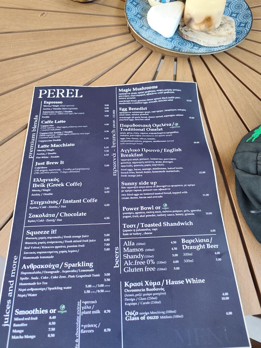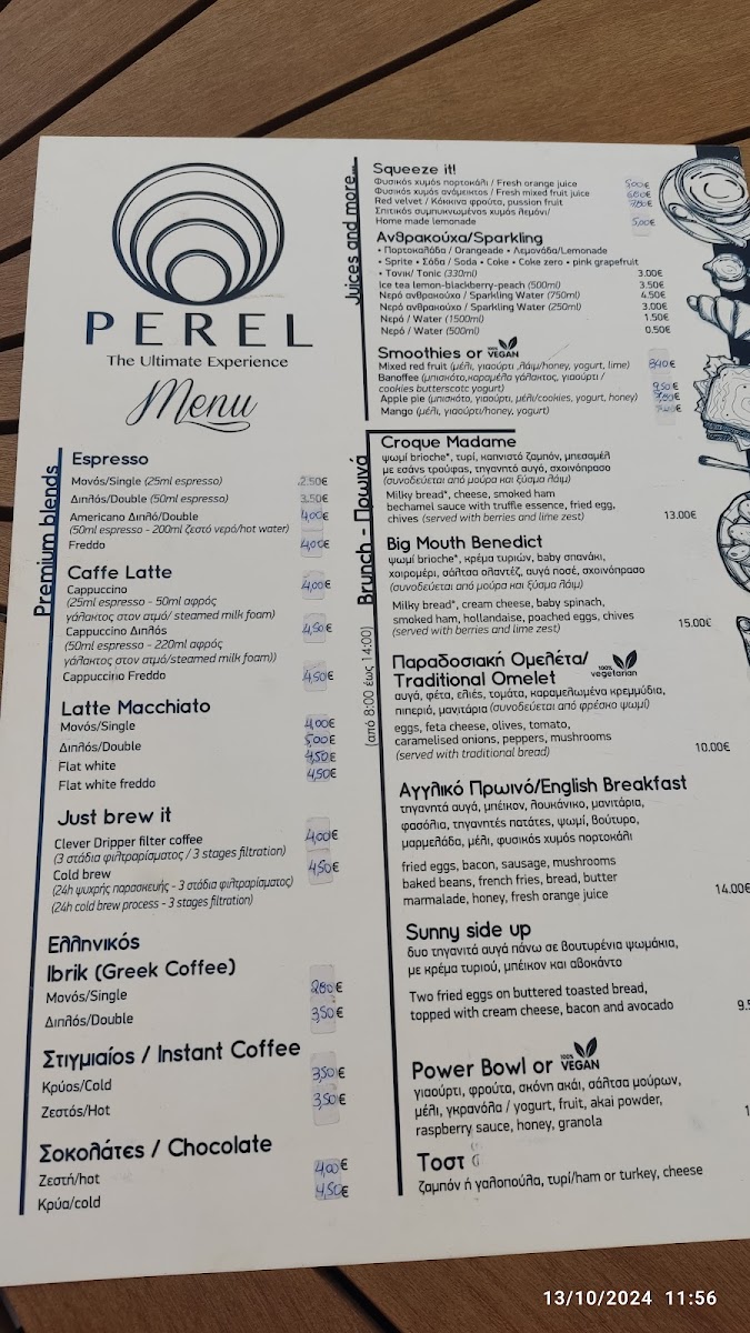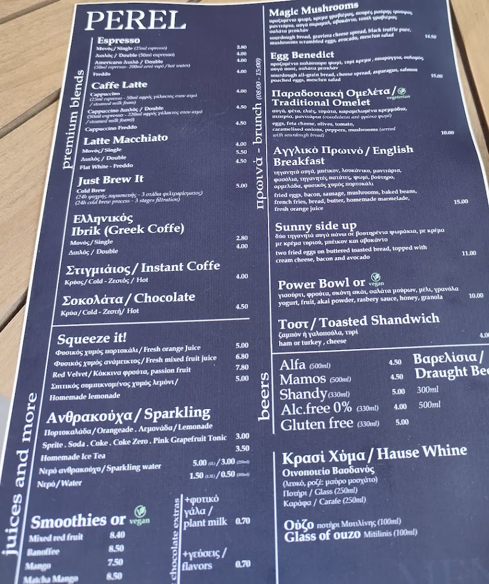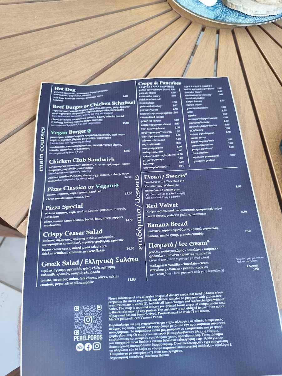 The menu at Perel Poros offers a thoughtfully curated selection of simple yet satisfying café dishes and comforting drinks. Whether you're stopping by for a relaxed breakfast, a casual lunch, or a quiet afternoon break, you'll find options that feel both familiar and thoughtfully prepared.